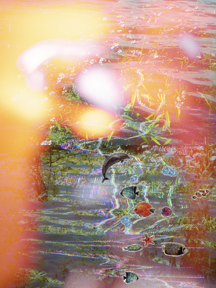 The collages are constructed using a distinct visual language that combines familiar components, such as stickers and trinkets, with images from my childhood camera, personal archive, and the family albums of my friends. I rephotograph, scan, and digitally combine these to create scenes where past and present are in conversation.
